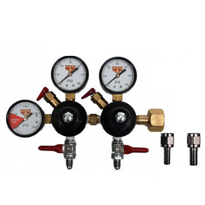 This Regulator is perfect for those who want to keep different pressure on different beer styles. It is also used for those who wish to have beer and soda off the same CO2 tank. You can serve multiple kegs with this system by adding an air distributor to one or both outlets. The gauge has two shut off valves with check valves on each. This keeps beer from flowing back into your system. We build and test these high quality regulators in house using an American made body and other high quality components.