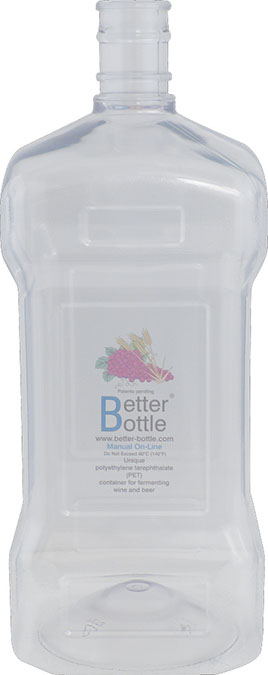 Better Bottle is a name known in the home beer and winemaking for their quality products. Plastic PET carboys are much safer than glass carboys; not only because they weigh less, but they will also not explode into shrapnel if dropped! These are made from Virgin PET and manufactured in such a way that the molecules are tightly packed, and less susceptible to oxygen transfer, resulting in better wine and beer!,Aside from it's advantages over glass carboys, the Better Bottle is relatively impermeable to oxygen. This means that for your wine's or beer destined for aging, this is a perfect choice for an aging vessel! When using the Better Bottle and it's accessories, the transfer rate of oxygen is lower than that suggested for Micro-oxygenation, and insignificant when compared to the amount of oxygen transferred through other bottles and their stoppers.,Specifications,,,Uses a #10 stopper or a 5 Gallon Carboy Hood w/ white caps.,,,Weight: 1.5 lbs,,,Temperature Tolerance: 140° F,,,Height: 19.5 inches,,,Length/Width (Square Bottle): 7.5 inches,,,Completely taste and odor free