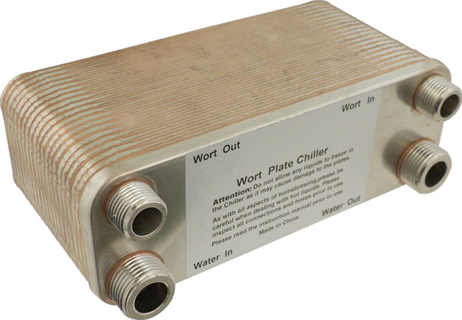 Chill your wort quickly and efficiently without spending a fortune when you purchase this 40 Plate Wort Chiller from MoreBeer! This popular addition to your home brewing system promises to cool your wort to the perfect low temperature to get the best cold break possible, making your beer taste better without going over budget.,This plate chiller is equipped with a ½ inch MPT wort in and out, as well as a ¾ inch MPT water in and out. It measures approximately 8.25 inches long, 4 inches high and 3 inches wide, making it incredibly compact yet still very effective.,Here at MoreBeer!, we recommend back flushing your plate chillers immediately after every use to help ensure that they're clean prior to brewing the next batch. You may also want to run boiling water through the wort plates prior to use to make sure that any bacteria are killed.